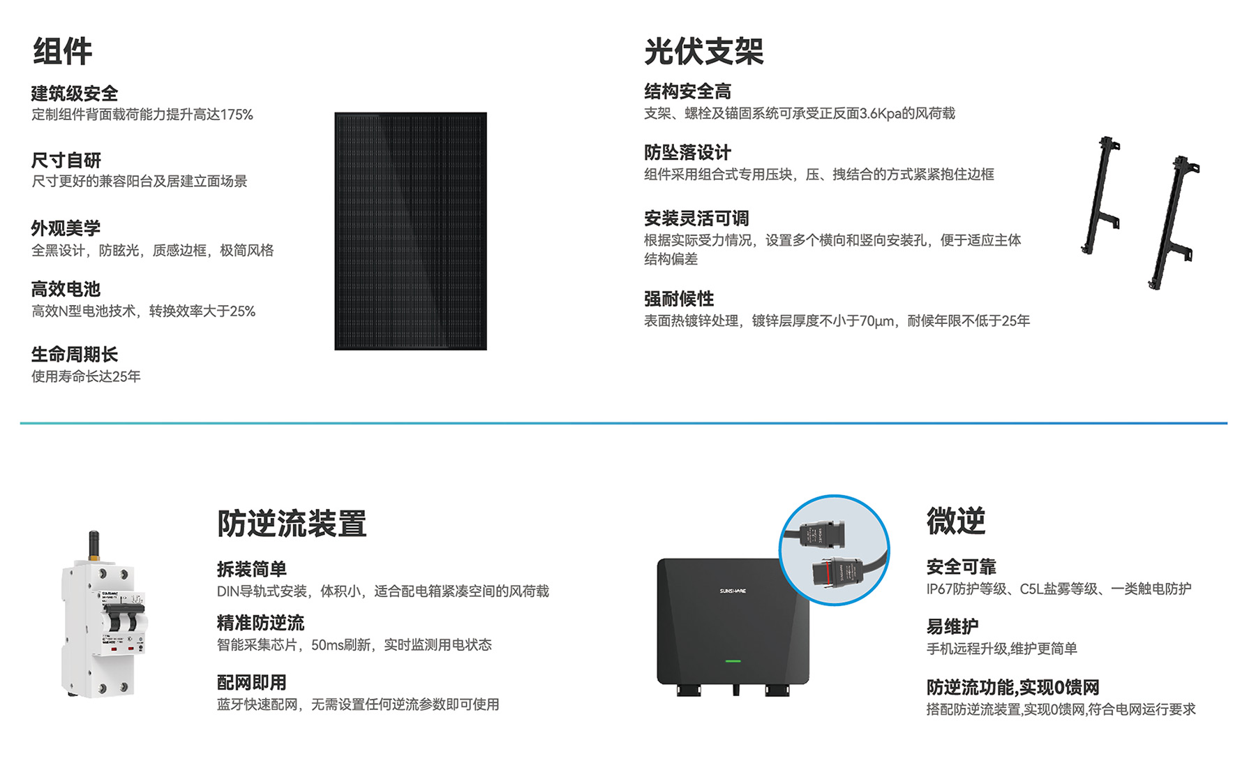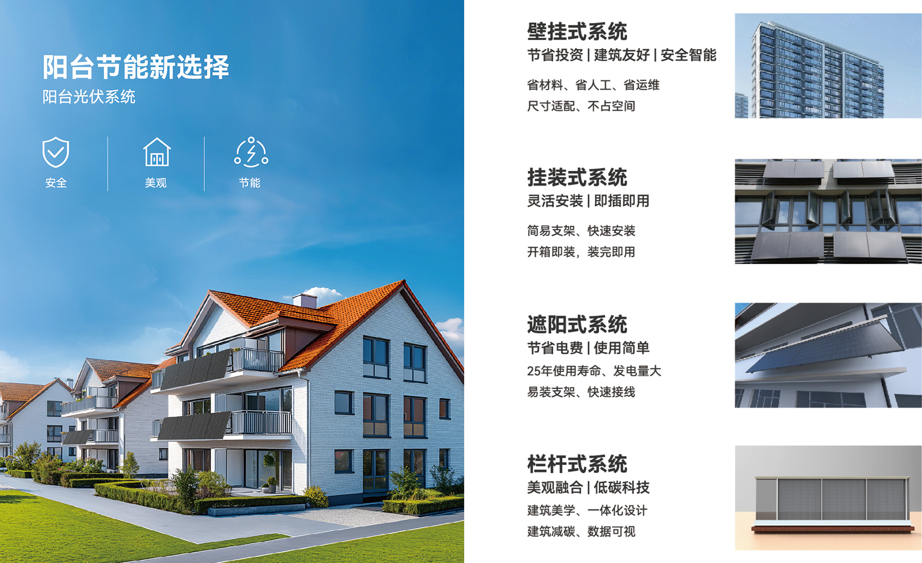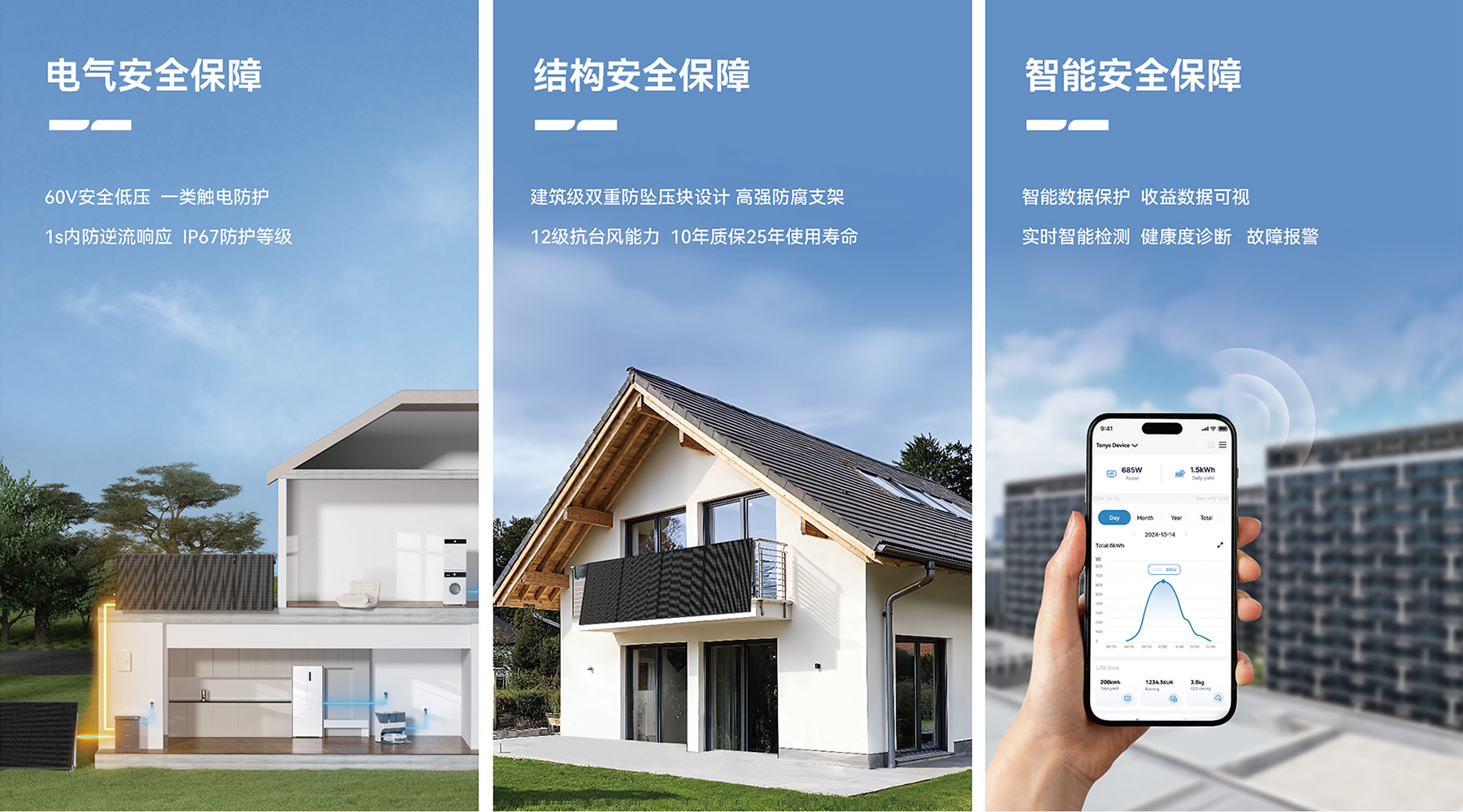 阳台光伏 以模块化、智能化、场景化为核心,提供“标准化套餐+灵活组合”双方案,适配多元需求,让清洁能源高效落地。 首页> 产品中心> 阳台光伏 产品优势 成功案例 产品优势 电气安全保障 60V安全低压,一类触电防护; 1s内防逆流响应,IP67防护等级。 结构安全保障 建筑级双重防坠压块设计,高强防腐支架; 12级抗台风能力,10年质保25年使用寿命。 智能安全保障 智能数据保护,收益数据可视; 实时智能检测,健康度诊断,故障报警。 成功案例